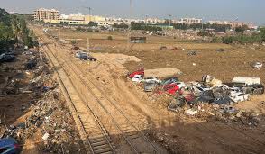 Cars and a ruined railway line after flash flooding in Valencia, Spain in 2024 (Dominic Hinde)
